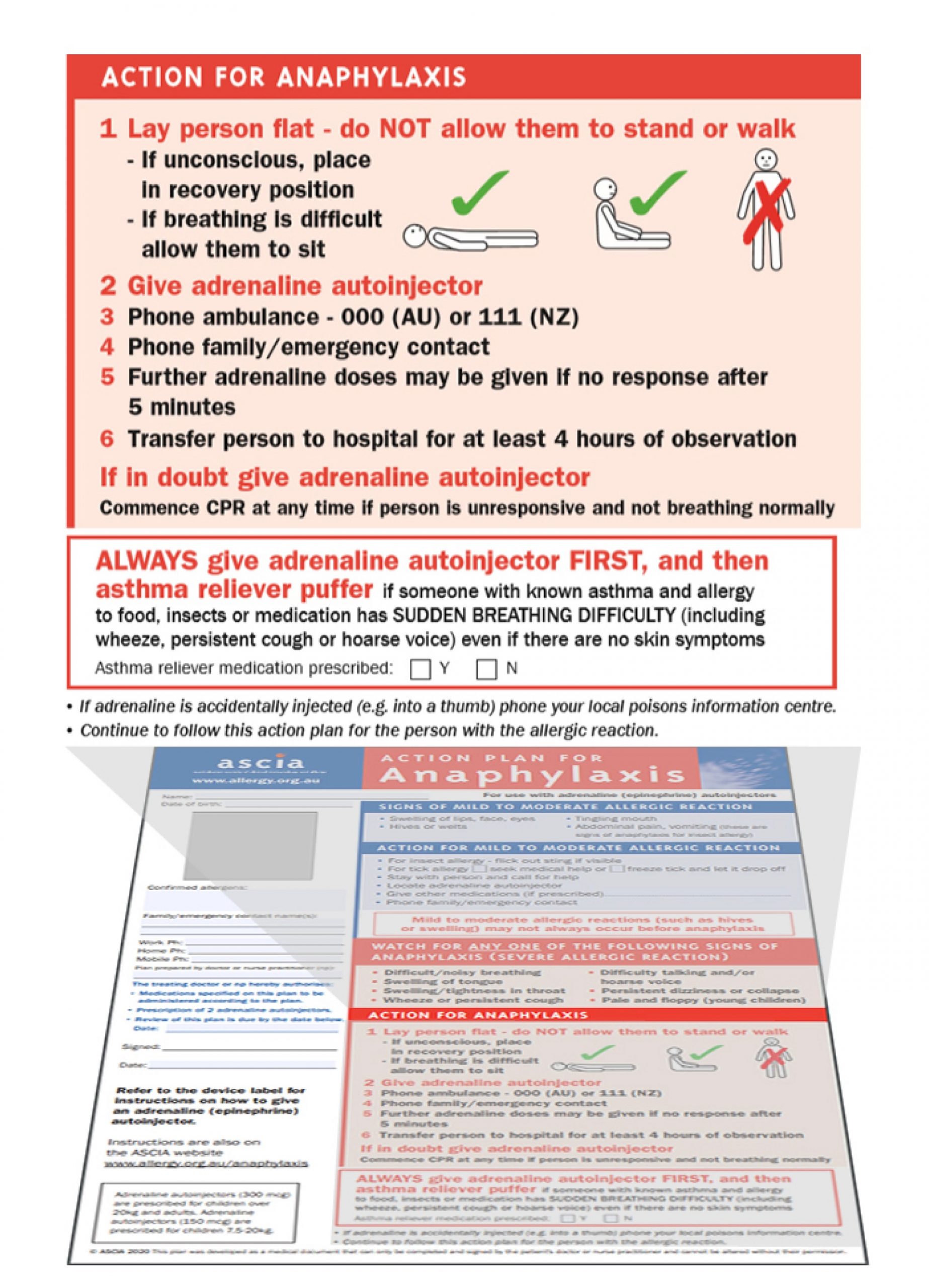 A rash alone is not life-threatening, but any of the other symptoms listed above are symptoms of anaphylaxis. Follow the ASCIA Action Plan if you have signs of anaphylaxis, lay down, give the adrenaline injector if available, and call an ambulance.